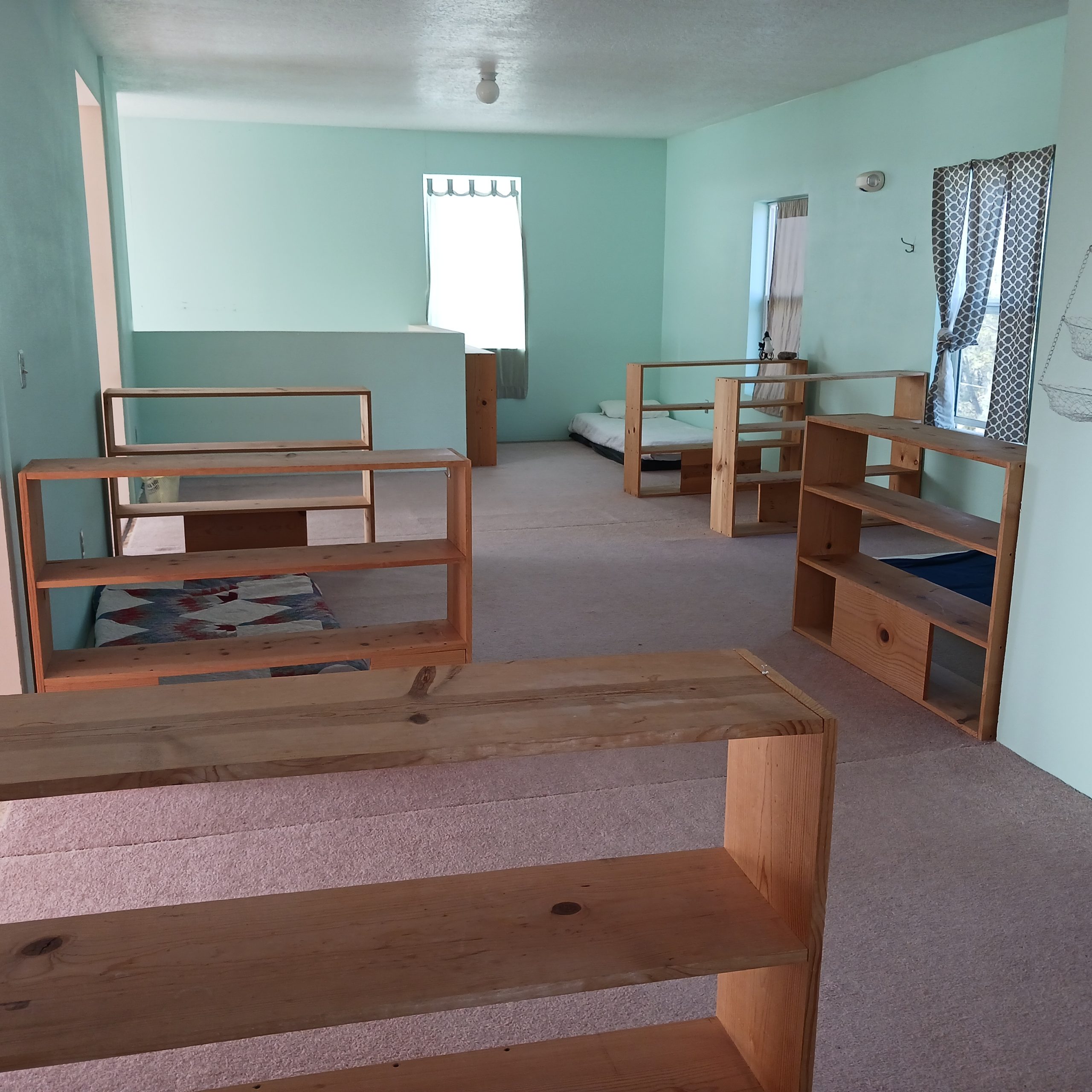 We have some small cabins for women that can hold up to three people for people that come with friends or want more privacy and they are located close to the women’s bathrooms and have light and electricity, shelves and beds.